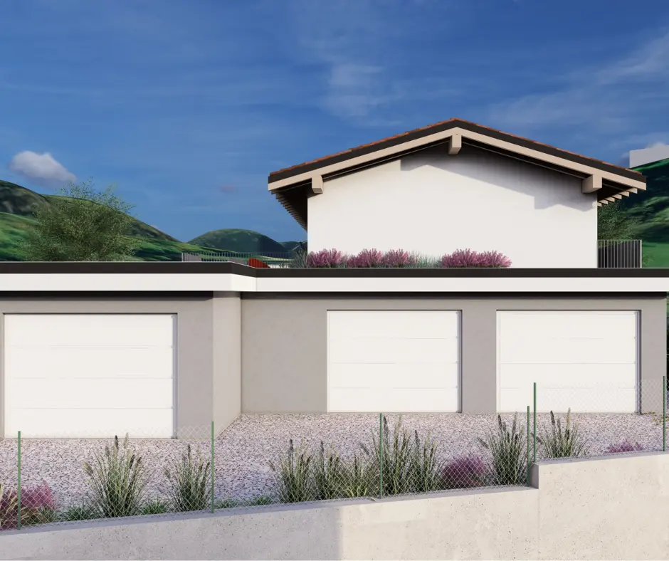 Portone sezionale, lavanderia, locale tecnico e posto auto.